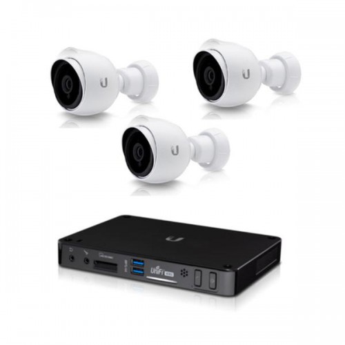 Security bundle consisting of three (3) UVC-G3-BULLET UniFi video cameras and one (1) dedicated hardware NVR.